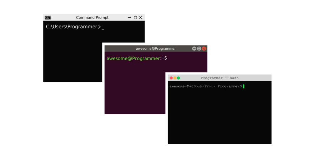 Computer terminal illustration image(Window, Mac, Ubuntu)